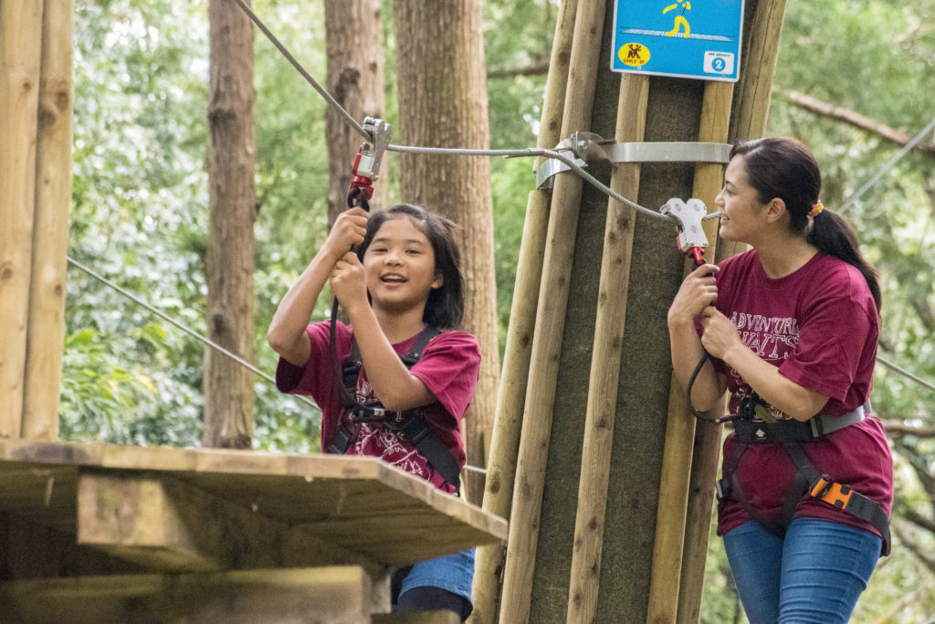 A:セルフビレイは、コースに設置されたセーフティライン(=金属製のケーブル)にカラビナとプーリーを利用者自身の手で架け替えながら、常に利用者がセーフティラインに繋がった状態で進むシステムです。カラビナやプーリーの掛け替えが容易な反面、運営方法やオペレーターにより安全性が大きく変化するリスクもあります。