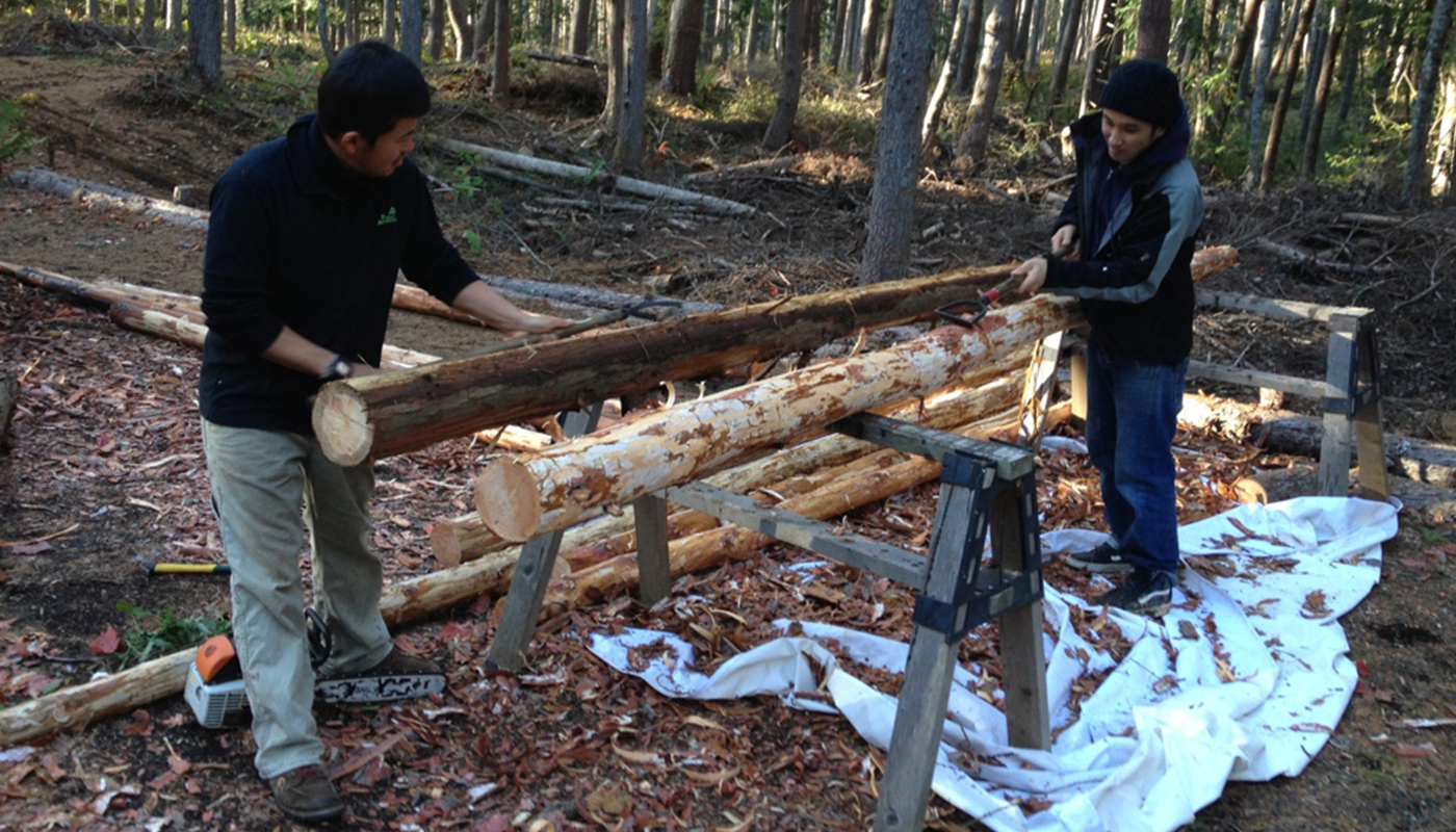 The construction is mostly done by hand, and is done in a unique style that combines tree climbing, aerial work technology, and forestry technology. The strength of a builder who works while hanging from a rope at a height of 10m or more above the ground is great. It’s dangerous and difficult work. The advantage of working with human power is that the candidate for the installation location expands. It can be installed even in places with steep slopes where aerial work vehicles cannot enter.