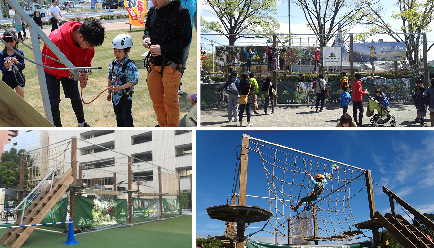 2階層になる。ジップラインが設置できる。移動を前提とするイベントの仮設というよりは常設で活用する場合に検討する方がいいだろう。日本ではまだ設置ケースはない。